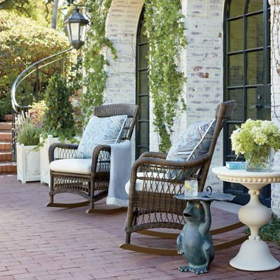 Wicker rockers for outlet front porch, Get Rocking Chair in White All weather Wicker with Lakeview Blue outlet