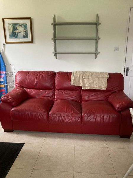 Red leather sofa and 2 arm chairs for sale in Co. Longford for 550