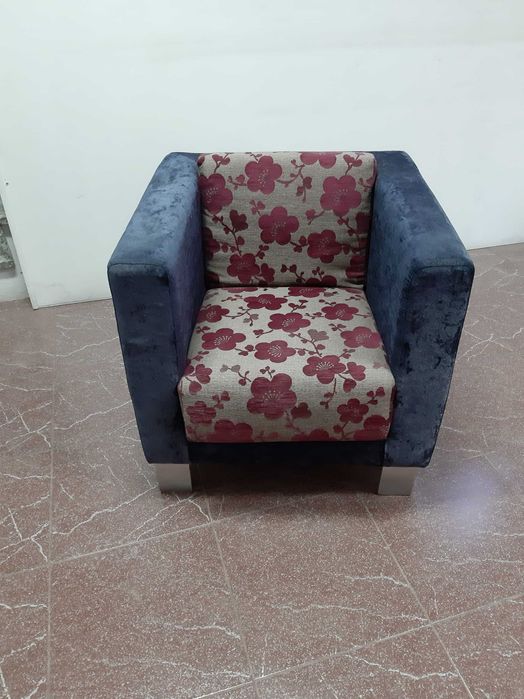 Patchwork outlet armchair homebase, Wooden Single Seater Sofa Accent Chair Armchair Linen Fabric outlet