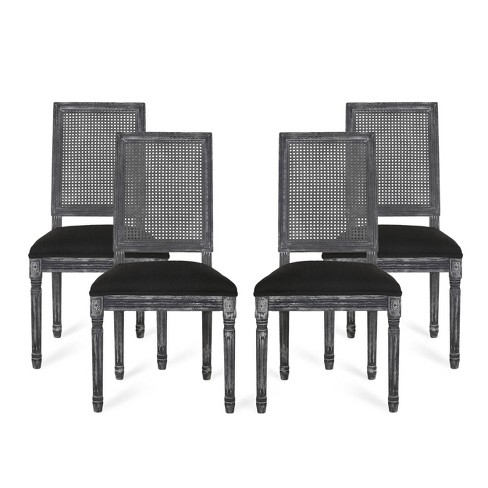 Set Of 4 Regina French Country Wood And Cane Upholstered Dining