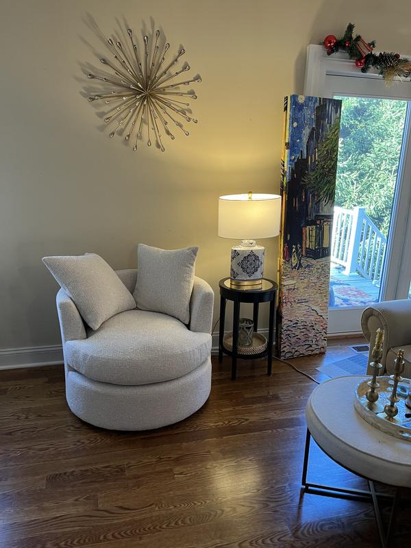 Tillie outlet swivel chair, 31.9 in. W Light Blue Chenille Swivel Accent Barrel Chair Round outlet