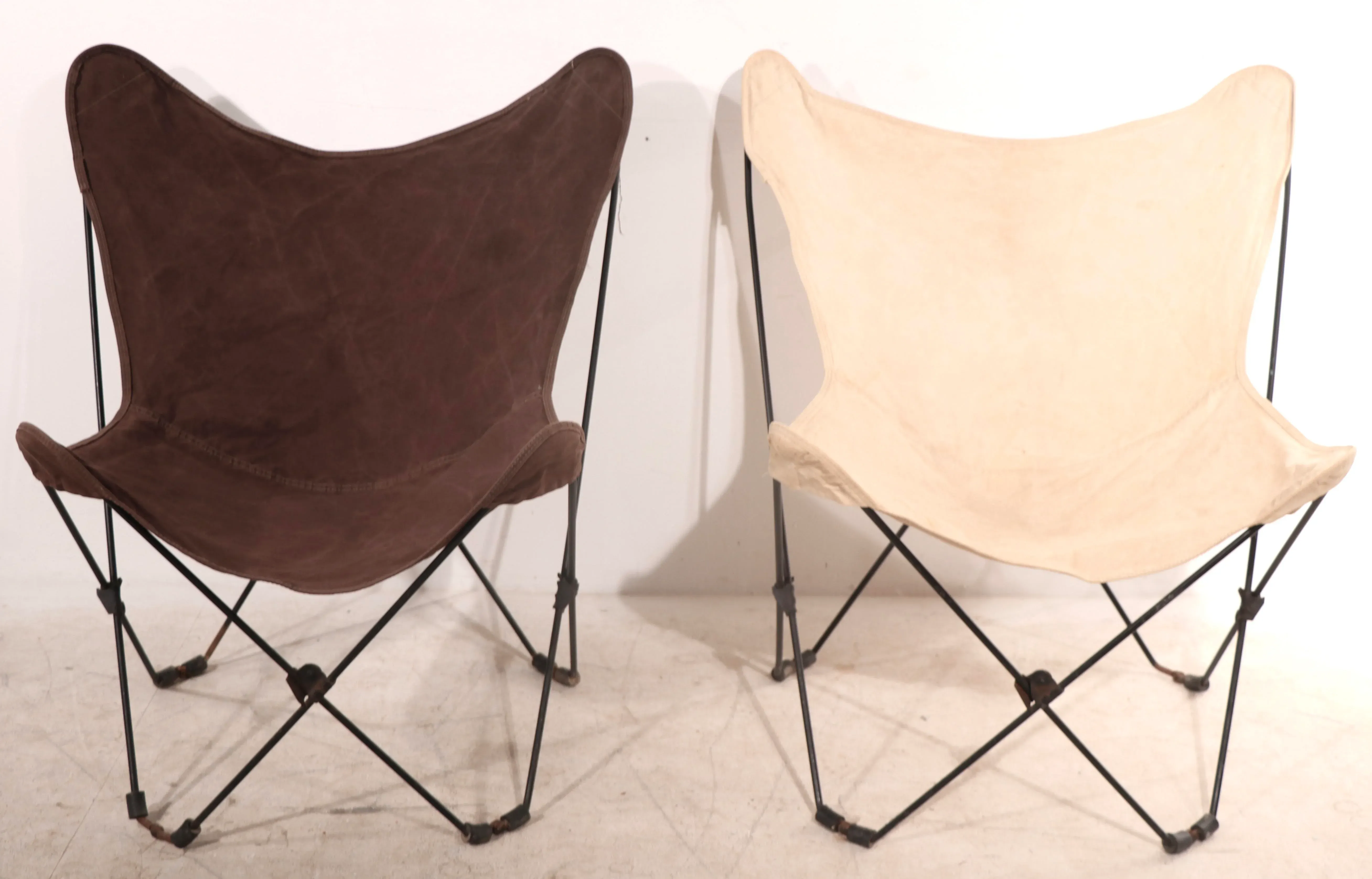 2 Mid Century Canvas Sling Butterfly Chairs on Folding Wrought