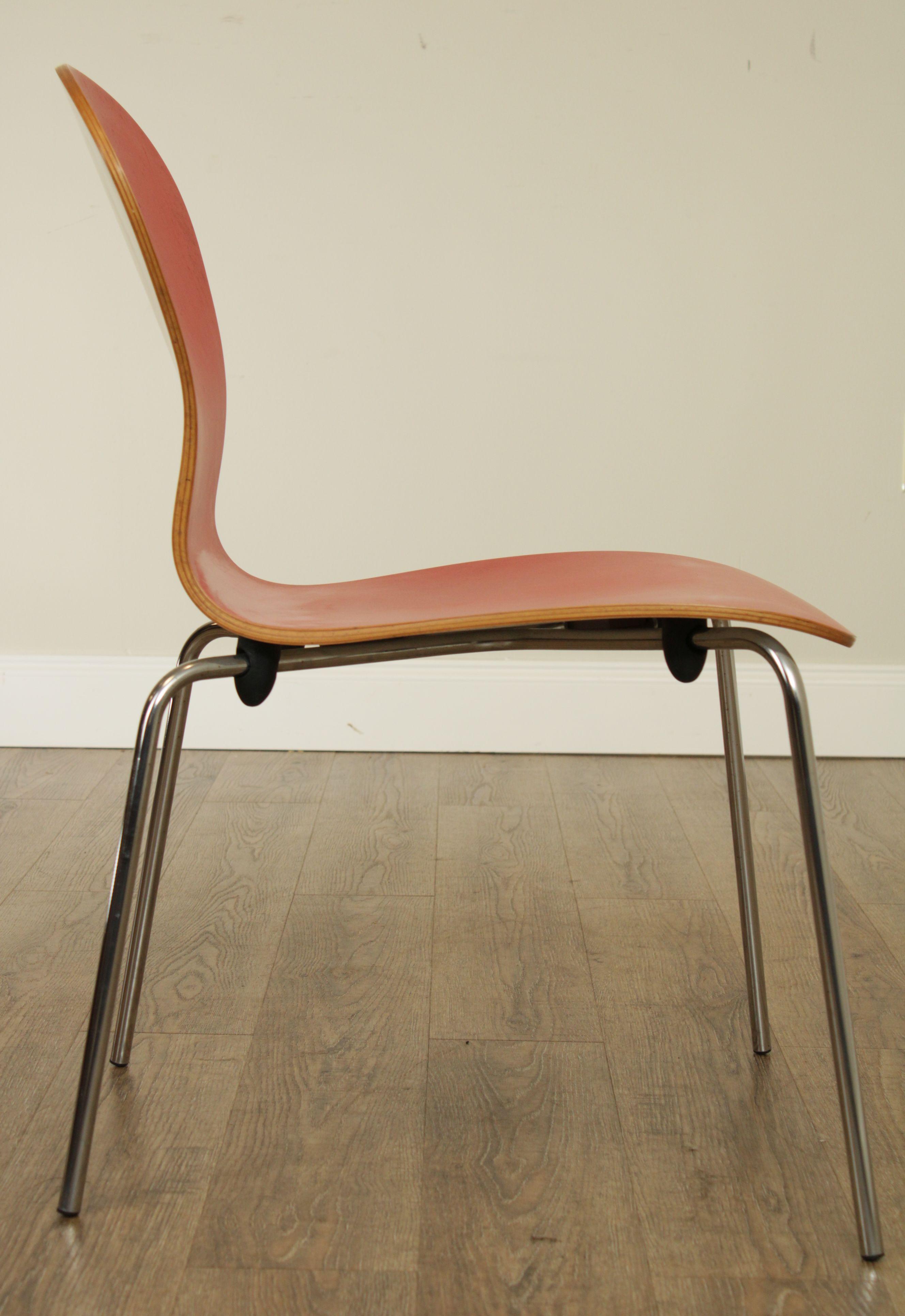 Knoll Studio Sprite Red Molded Plywood Chrome Base Side Chair