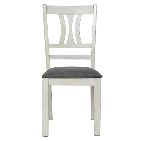 Luxenhome Distressed Off White Rubberwood And Gray Upholstered