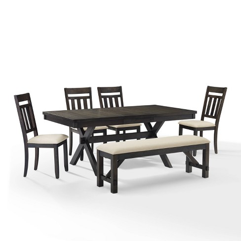 Hayden 6pc Extendable Dining Set With Bench And 4 Slat Back Chairs