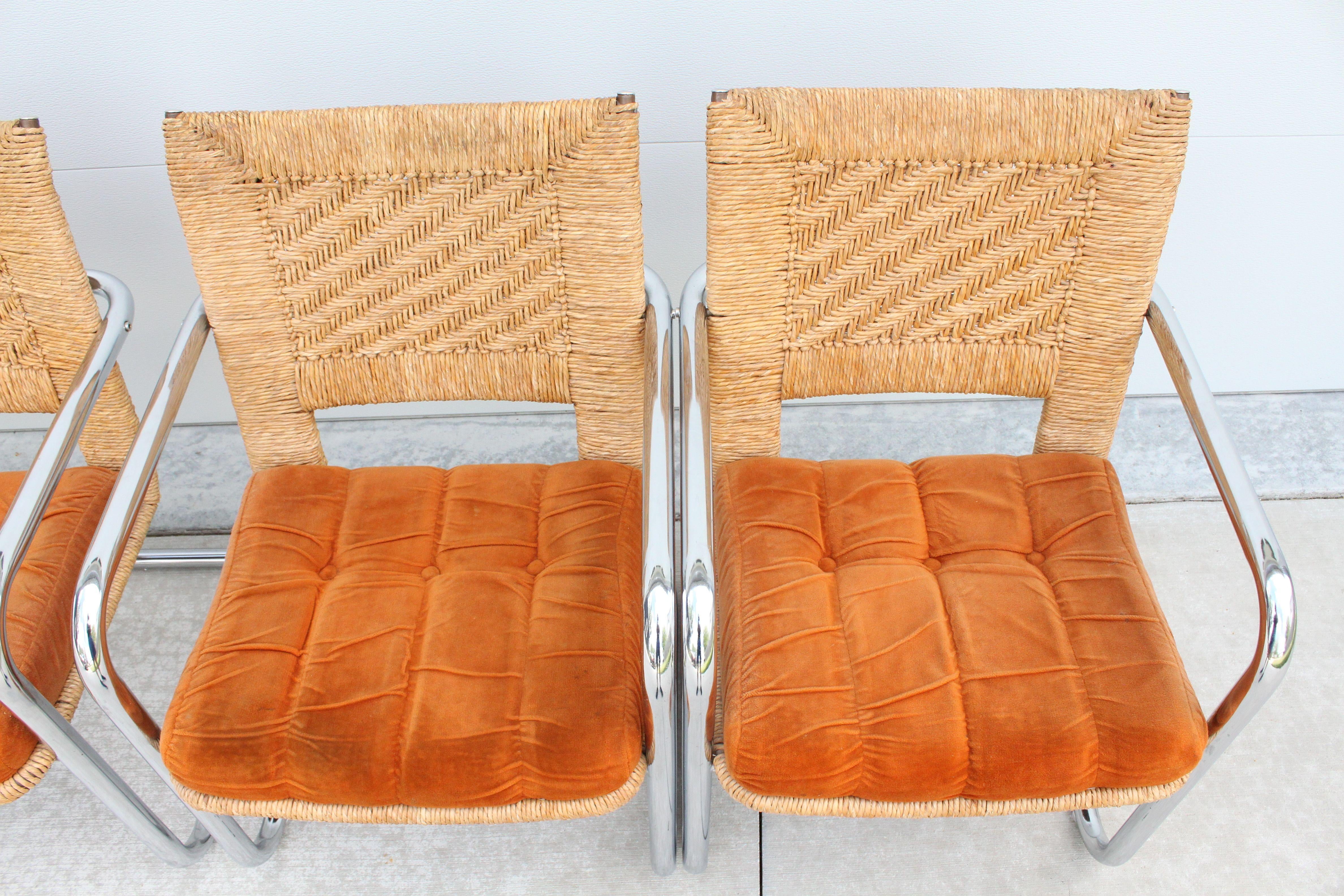 MidCentury Chrome and Rattan Dining Chairs AptDeco