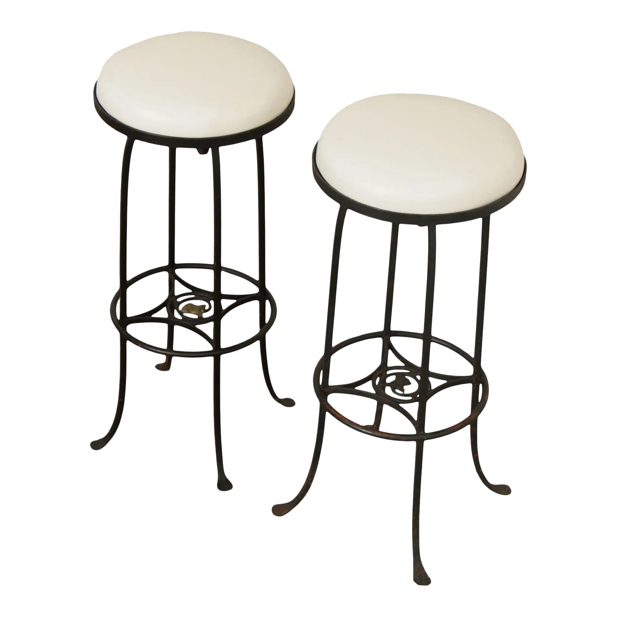 Custom Vintage Wrought Iron and Vinyl Patio Bar Stools A Pair