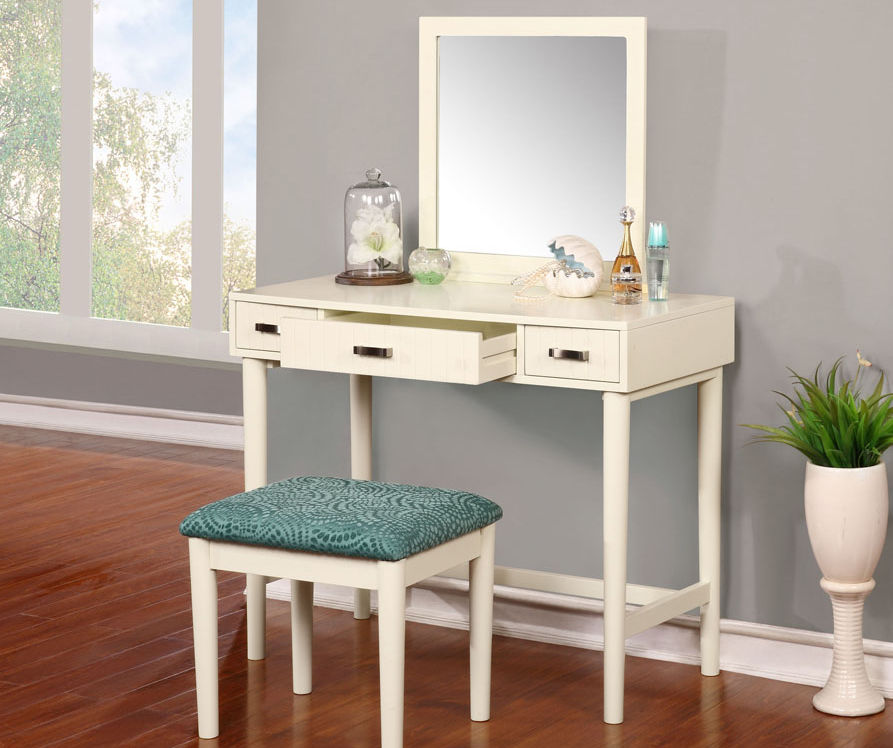 Ashley Cream 3 Drawer Mirror Vanity Set with Stool Big Lots