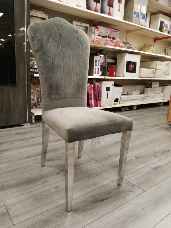 Ex display outlet dining chairs, Pair Of Light Grey Dining Chairs With Chrome Legs Ex Display 50623 outlet