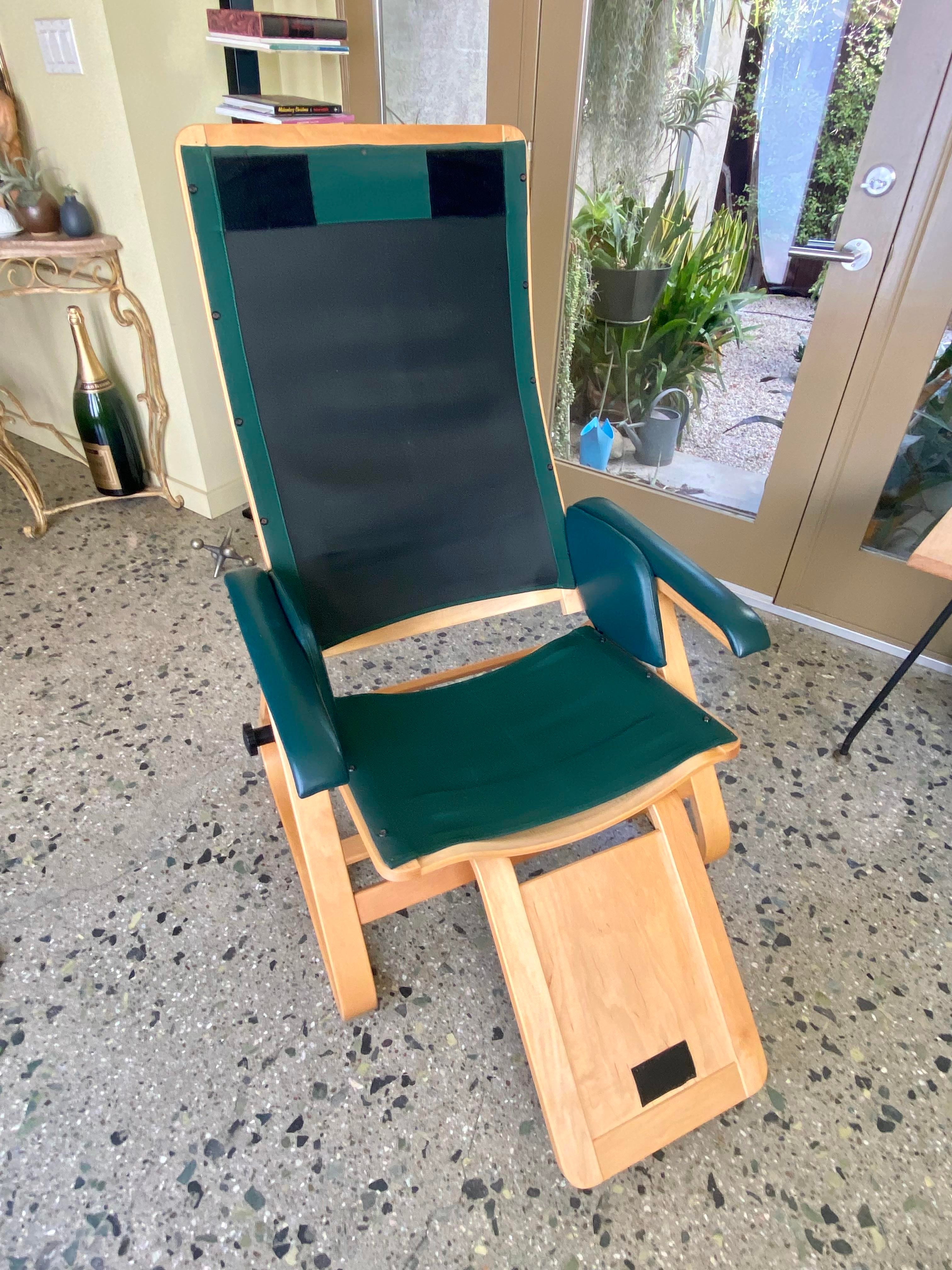 1980s Nepsco Backsaver Bentwood Frame Reclining Chair With Green Leather Upholstery