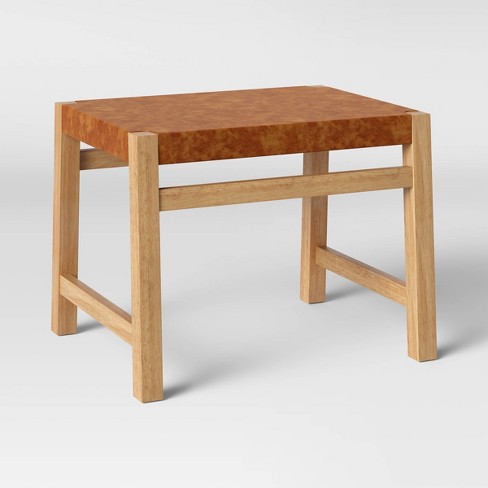 Rennert Faux Leather And Wood Ottoman Caramel Threshold Target