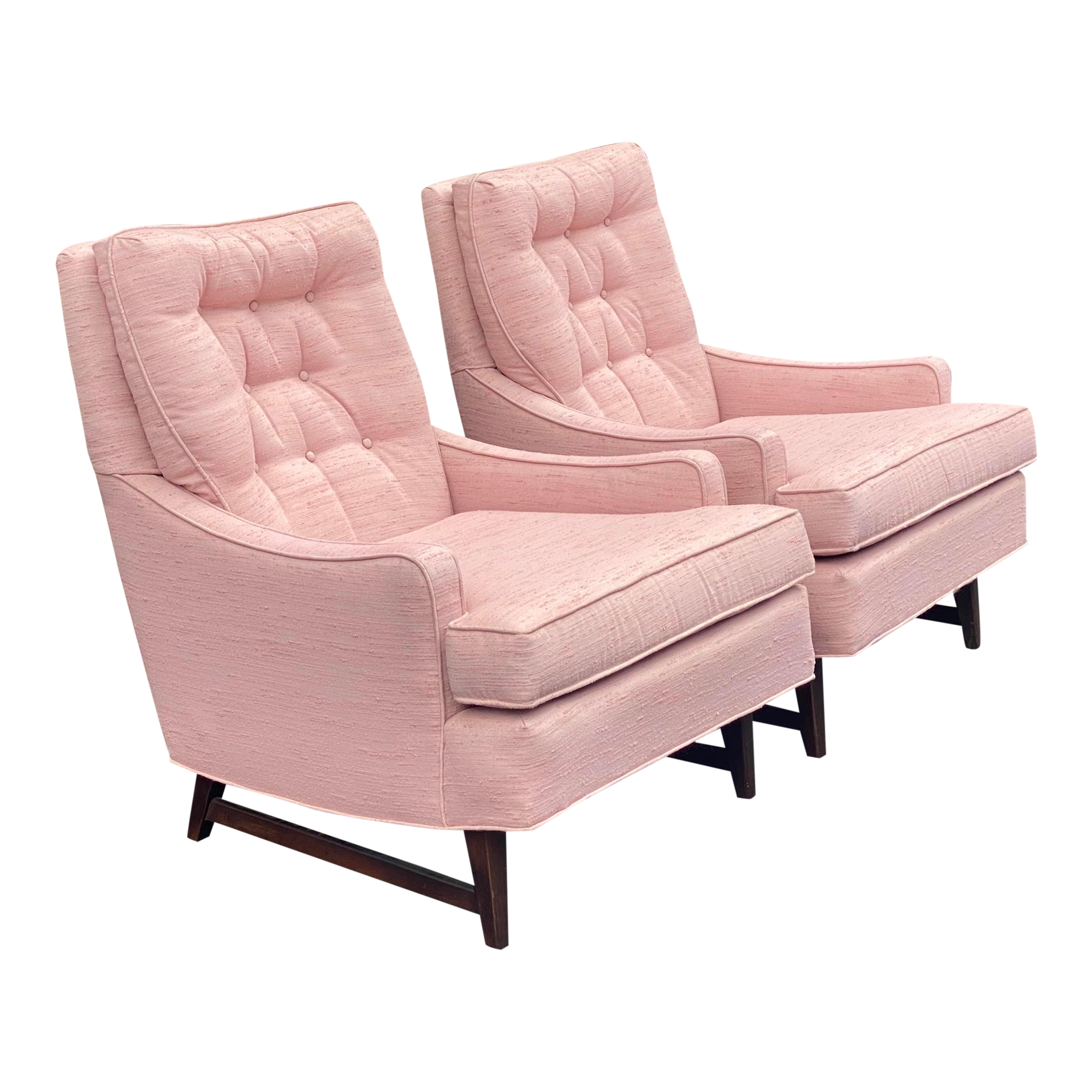 Mid Century Modern Nubby Pink Tufted Lounge Chairs Chairish