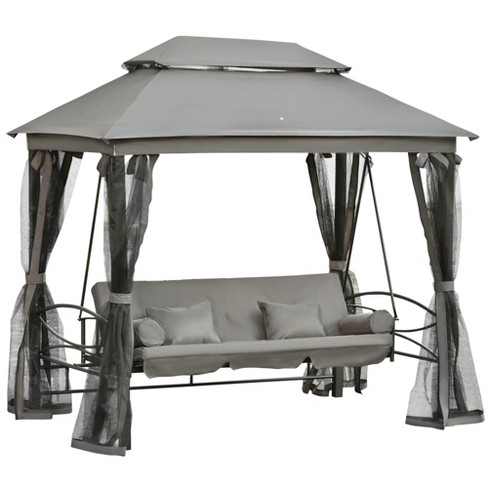 Outsunny 3 Person Patio Swing Chair Gazebo Swing With Double Tier