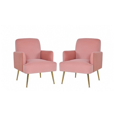 Set of 2 Rosa Transitional Comfy Living Room Armchair with Metal Legs ARTFUL LIVING DESIGN PINK
