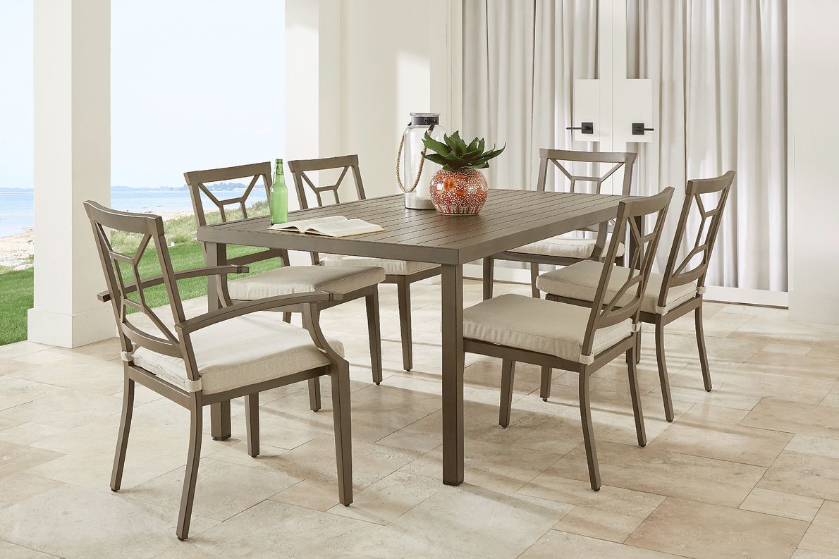 Waterfront 7 Pc Bronze Metal Beige Aluminum Outdoor Dining Set