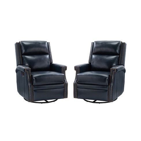 Set of 2 Favonius Wooden Upholstery Genuine Leather Swivel Rocker Recliner with Nailhead Trim for Bedroom and Living Room ARTFUL LIVING DESIGN NAVY