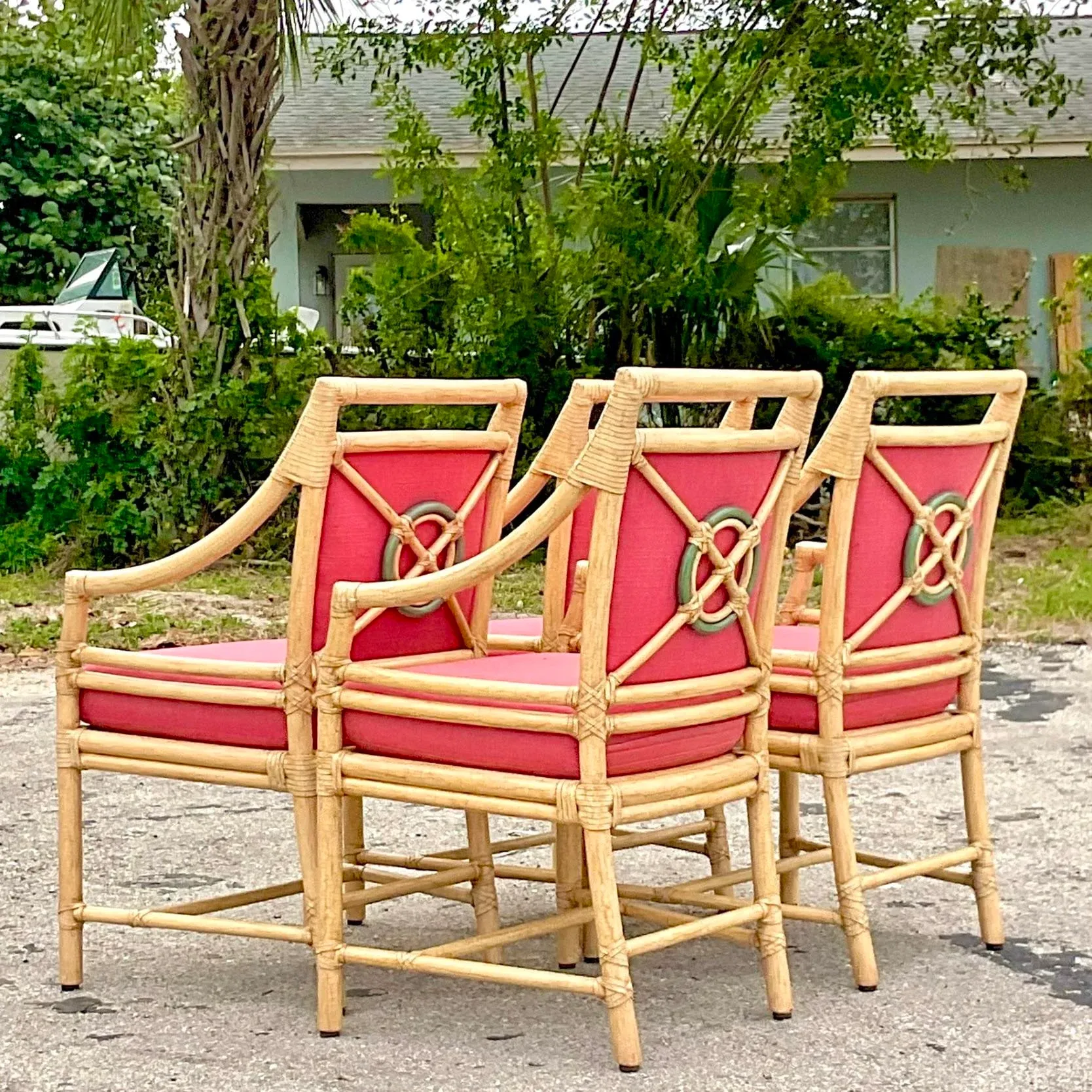 Vintage Coastal McGuire Target Back Rattan Dining Chairs Set of 4