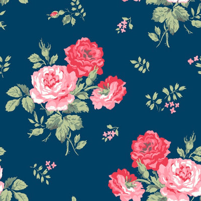 Cath Kidston Blue Floral Pearl effect Embossed Wallpaper DIY at B Q