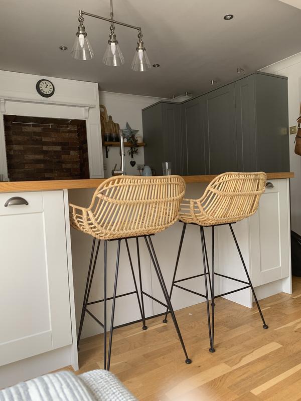 HOMEFUN 17.5 in. W Natural Rattan Indoor Bar Chair with 4 Black