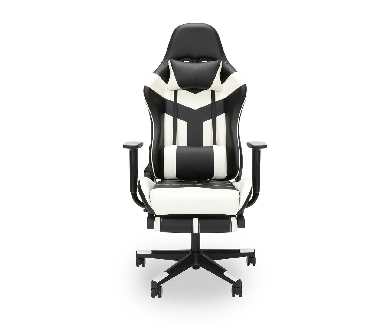 Essentials by OFM Black White Faux Leather Racing Gaming Chair