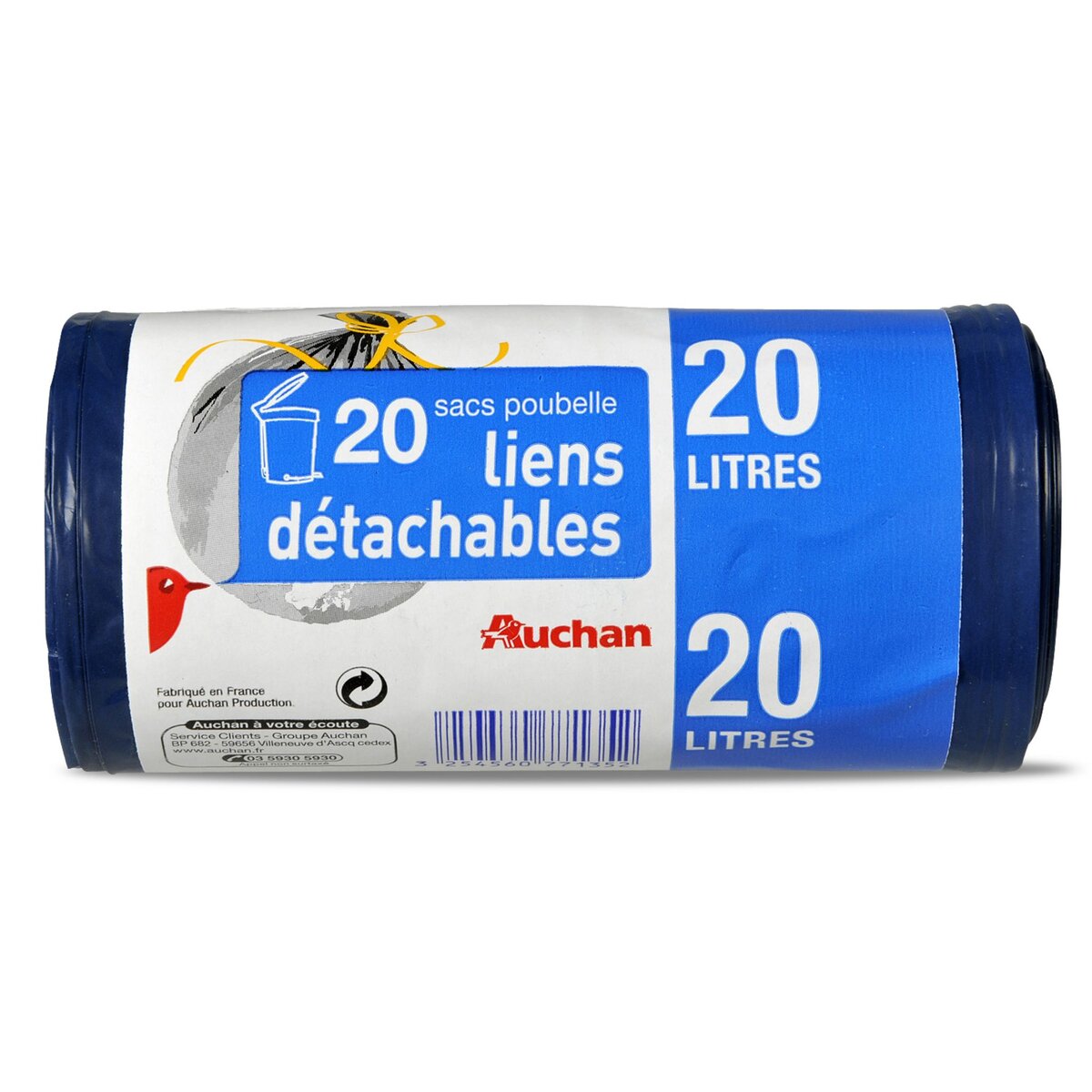 AUCHAN Sacs poubelle liens d tachables 20l 20 sacs pas cher