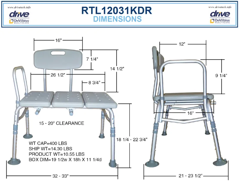 Drive medical transfer outlet shower bench, Drive Medical Bathroom Safety Shower Tub Bench Chair with Back outlet