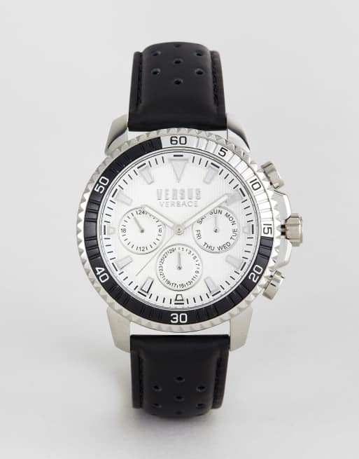 Montre outlet versace versus, Versus Versace S3001 Aberdeen Leather Watch In Black outlet