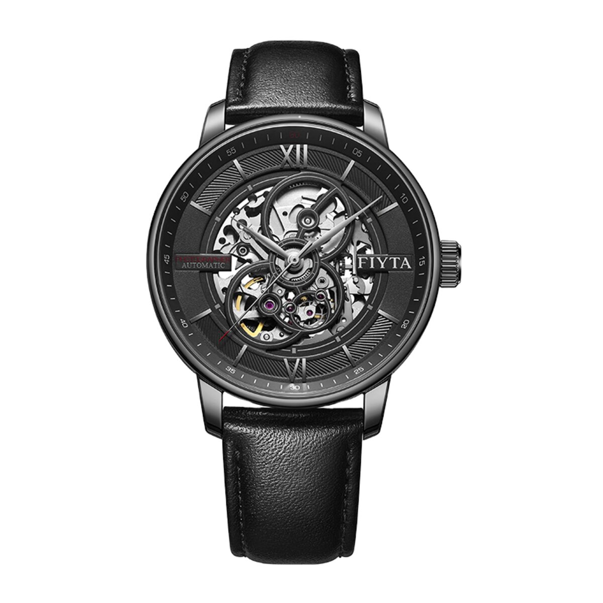Montre automatique homme outlet pas cher, Montre Automatique Fiyta Photographer Squelette Homme Cuir Noir outlet
