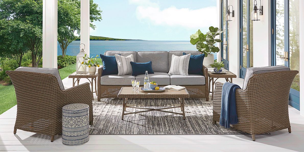 Fifth Shore Ridgecrest 4 Pc Brown Dark Wood Slate Gray Wicker