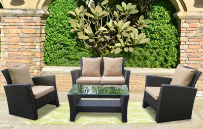 Valencia 4 Piece Outdoor Sofa Dark Brown Rattan Garden Set Glass