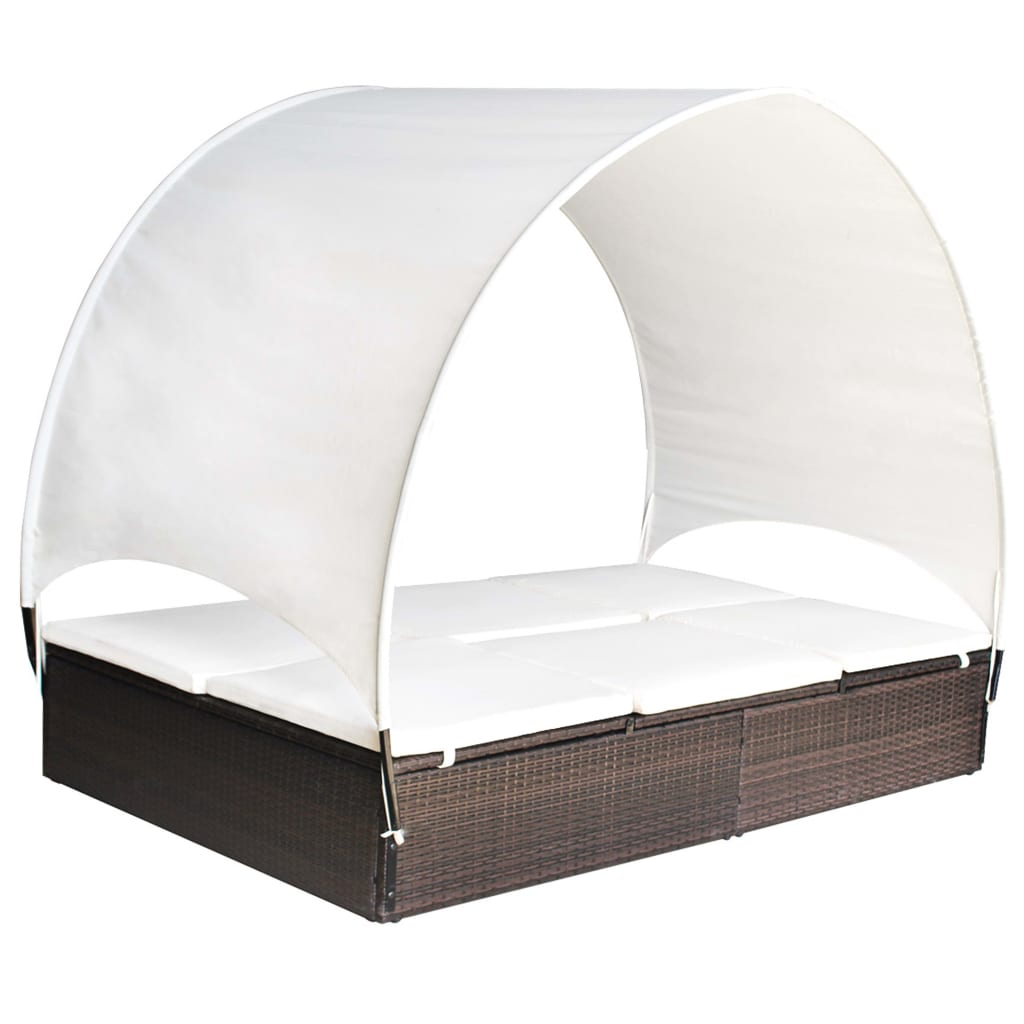 vidaXL Double Sun Lounger with Canopy Poly Rattan Black N A