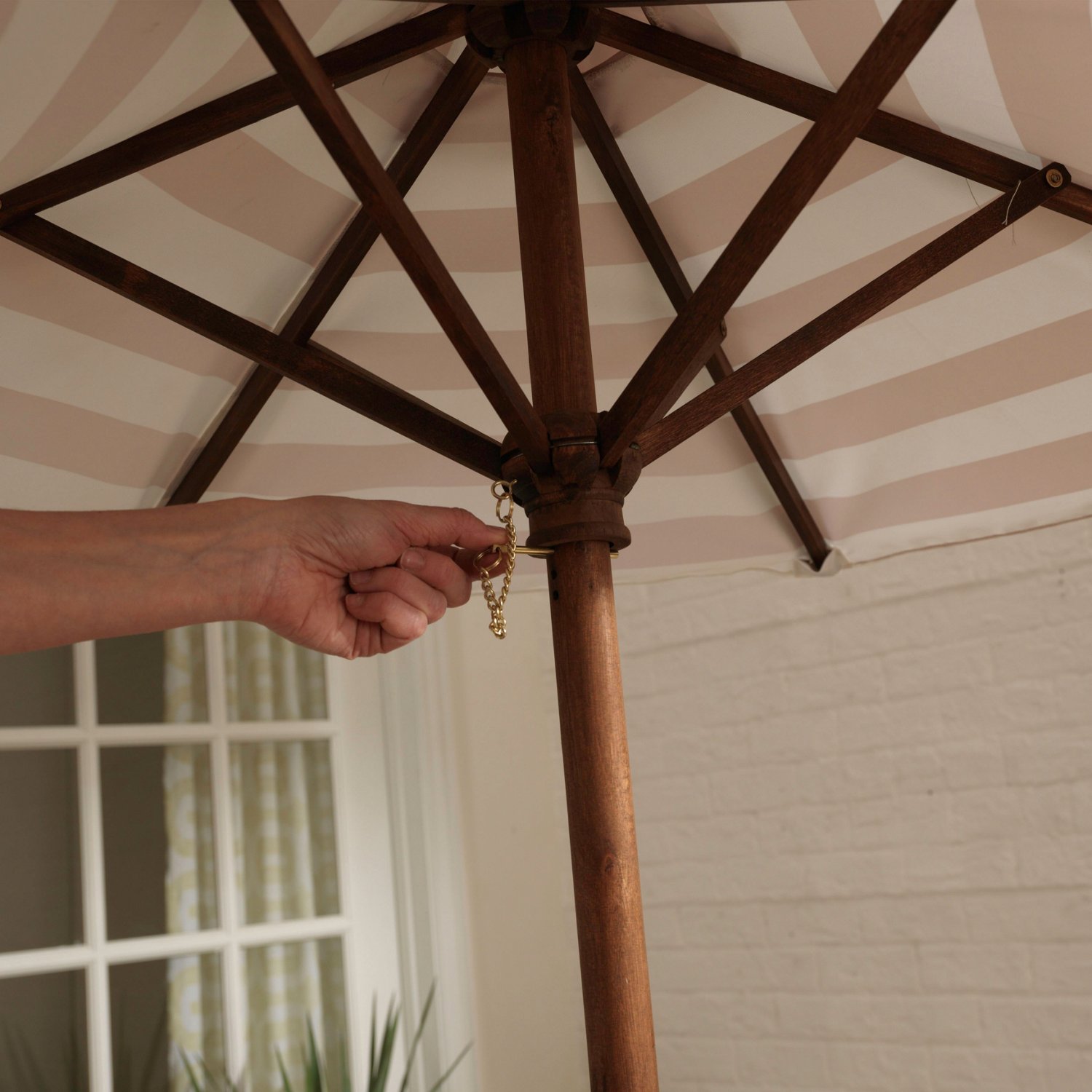 KidKraft Outdoor Wooden Table Bench Set with Striped Umbrella