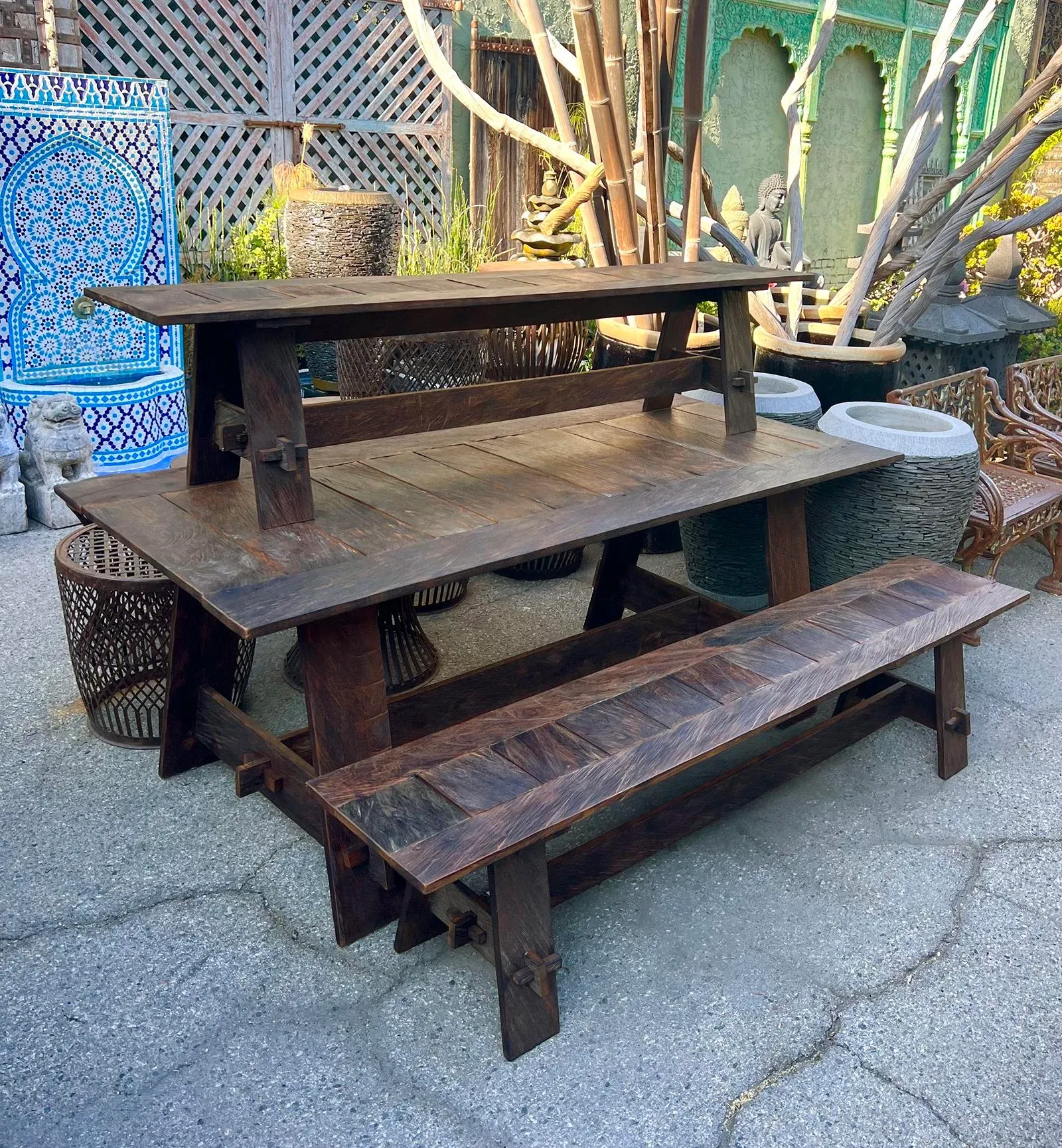 Outdoor farmhouse table outlet with bench, 10 FT FARMHOUSE BENCH Rustic Farm House 14x120x19h Distressed Dark outlet