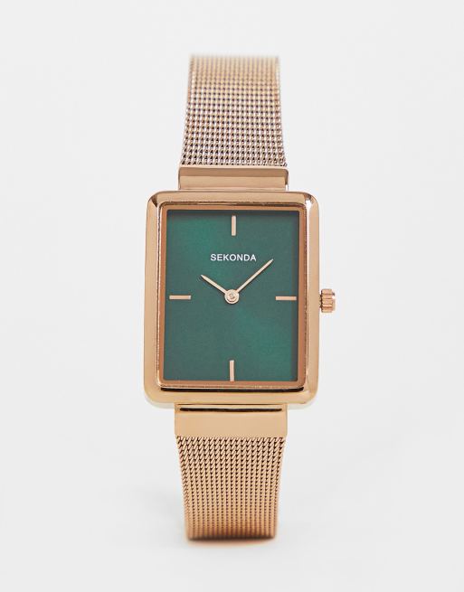 Sekonda Montre carr e pour femme cadran vert Or rose