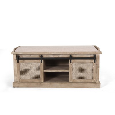 Niemi Rustic Storage Bench With Cushion Beige Natural black