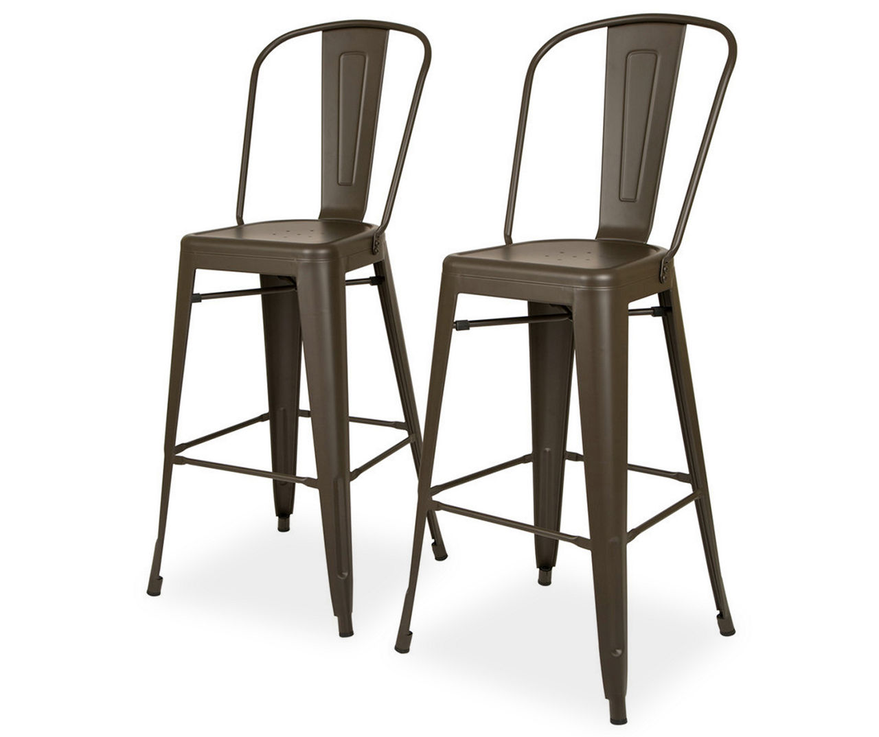 Glitzhome Rustic Steel Slat Back Indoor Outdoor Bar Chairs 2 Pack
