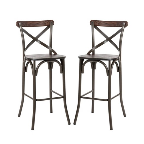 Set of 2 Steel Barstools with Solid Elm Wood Seat and Back Support Rustic Glitzhome