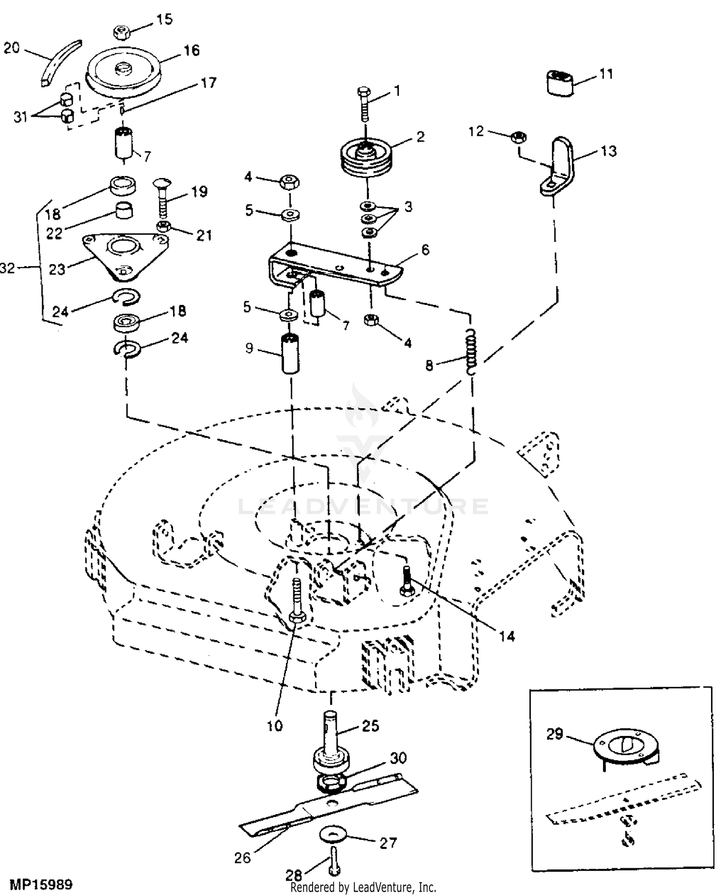 John Deere 111 Hydrostatic Lawn Tractor PC1699 Spindle Blade Hi