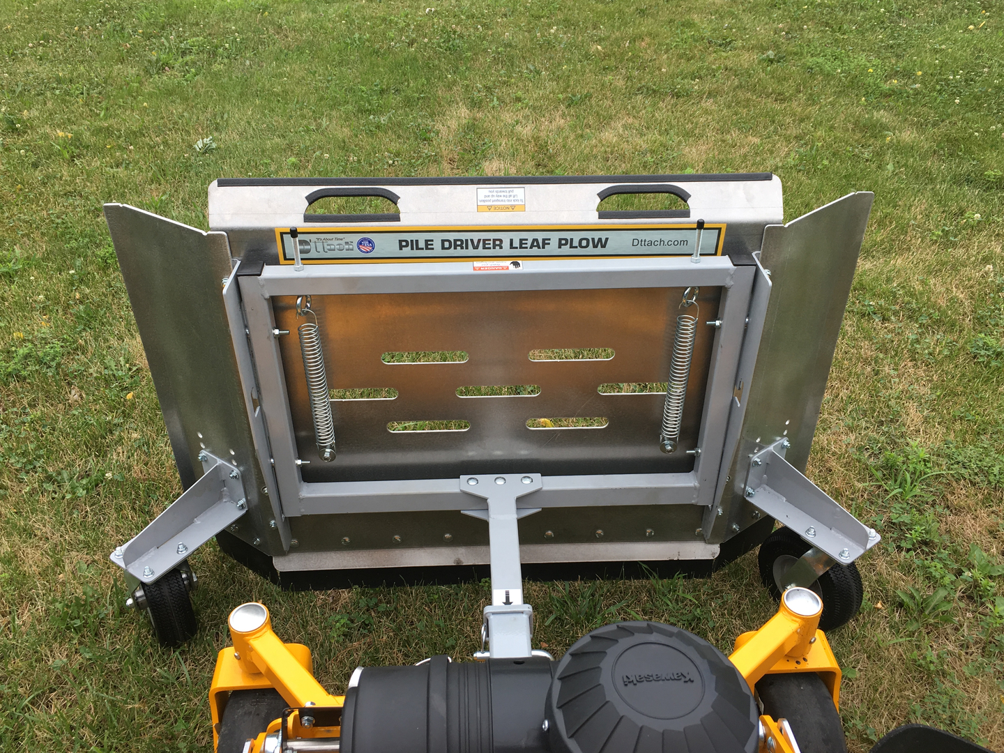 Leaf plow outlet for mower, D TTACH PILE DRIVER LEAF PLOW outlet