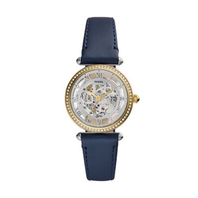 Montre Lyric automatique en cuir bleu marine ME3199 Fossil