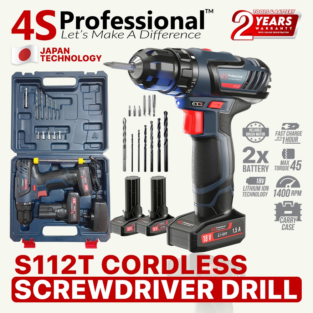 4S Professional S112T HIGH Torque Cordless Screwdriver Drill 18V
