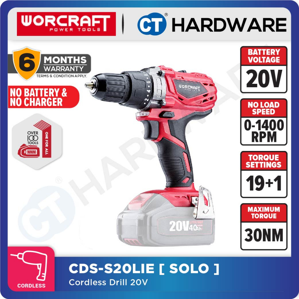WORCRAFT CD S20LIE CORDLESS DRILL 20V 1400RPM 30N.m 0.8 10MM