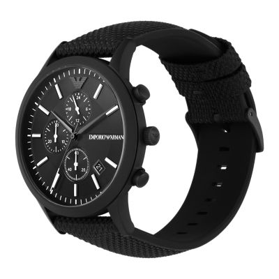 Emporio Armani Chronograph Black Silicon Backed Fabric Watch