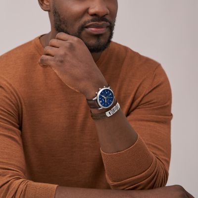 Montre Homme Fossil FS6018SET Bracelet Cuir Marron sur Bijourama