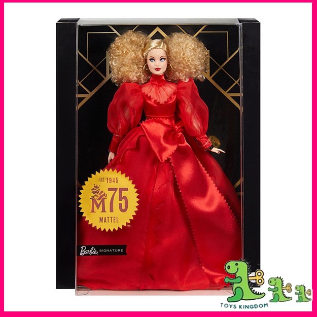 BARBIE Signature Mattel 75th Anniversary doll Red Dress New Damaged Box