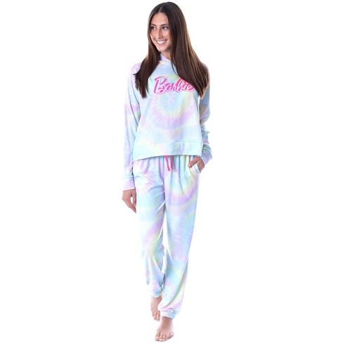 Barbie outlet women's pajamas, Mattel Barbie Doll Logo Tie Dye Womens Pajama Loungewear Hooded outlet