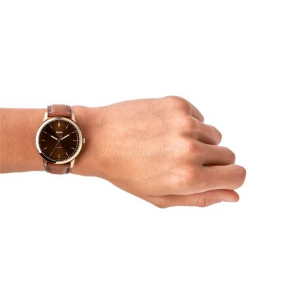 The Minimalist Three hand Medium Brown LiteHide Leather Watch