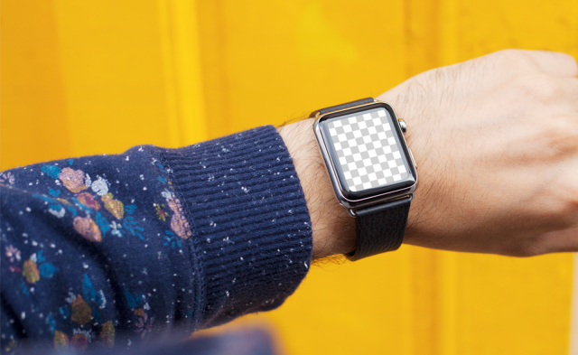 Apple Watch gratuite Mockup sur jaune Mockuuups Studio