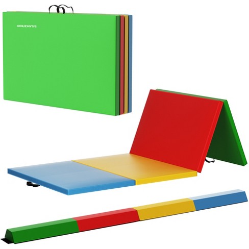 BalanceFrom Fitness All Purpose Folding Anti Tear 4 Panel Fitness Mat w Sectional Floor Balance Beam for Aerobics Gymnastics Multi