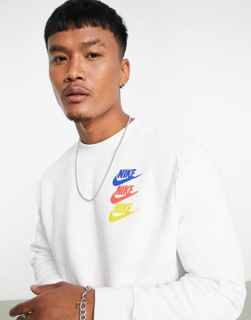 Nike Sweat ras de cou logo multicolore Blanc ASOS